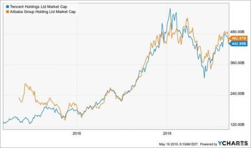 5月15日,阿里巴巴和腾讯同一天发布新一季财报,这两家市值超过4000亿美元的互联网公司都感受到了经济放缓和贸易摩擦的影响。