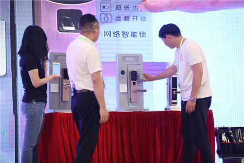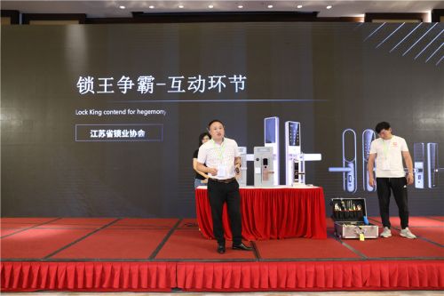 “锁王争霸”由江苏省锁业协会协办,现场多款热门智能锁同台比拼,江苏省锁业协会会长李小辉负责讲解,2019全国锁王争霸赛季军袁亮负责破解,在经历了小黑盒干扰、指纹膜复制、磁卡复制等等破解方式后,只有WULIAN网络智能锁坚持到最后,获得“锁王”称号。