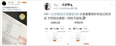 不久前,网络上流传着一个段子:种一口牙相当于买了一辆宝马车,引发网友热议,并纷纷跟帖。有人晒出高达5万的收费单据,称这是人生目前最后悔没有之一;还有人晒出账单后直言,“看牙太贵,吃不起饭了。”