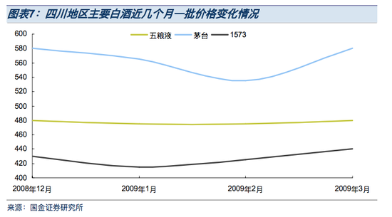 “控量保价”策略效果显著。在对大经销商减半供应后,沪、京、深等地均有不少经销商表示茅台已缺货。供不应求的茅台酒价开始反弹。2009年3月,四川地区茅台酒一批价接近580元,较2月低点反弹近40元。