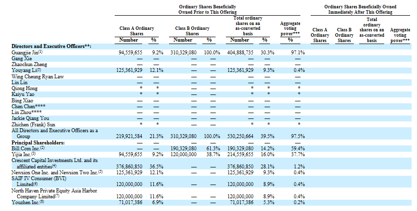 根据招股书,IPO前,青客公寓创始人兼CEO金光杰持有30.3%的股份及97.1%的投票权,投资机构中,凯欣资本持有股份最多,总共持有28.1%股份,纽信、赛富和摩根士丹利管理的私募基金所持股份分别为有9.3%、8.9%和8.9%。
