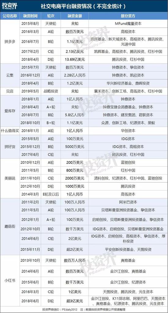 在万亿市场的诱惑下,资本纷纷出手。企查查数据显示,无论是成立较早的蘑菇街与美丽说,还是已上市的拼多多、云集、什么值得买,背后都站着相当豪华的资方阵容。风起了,大家广撒网。