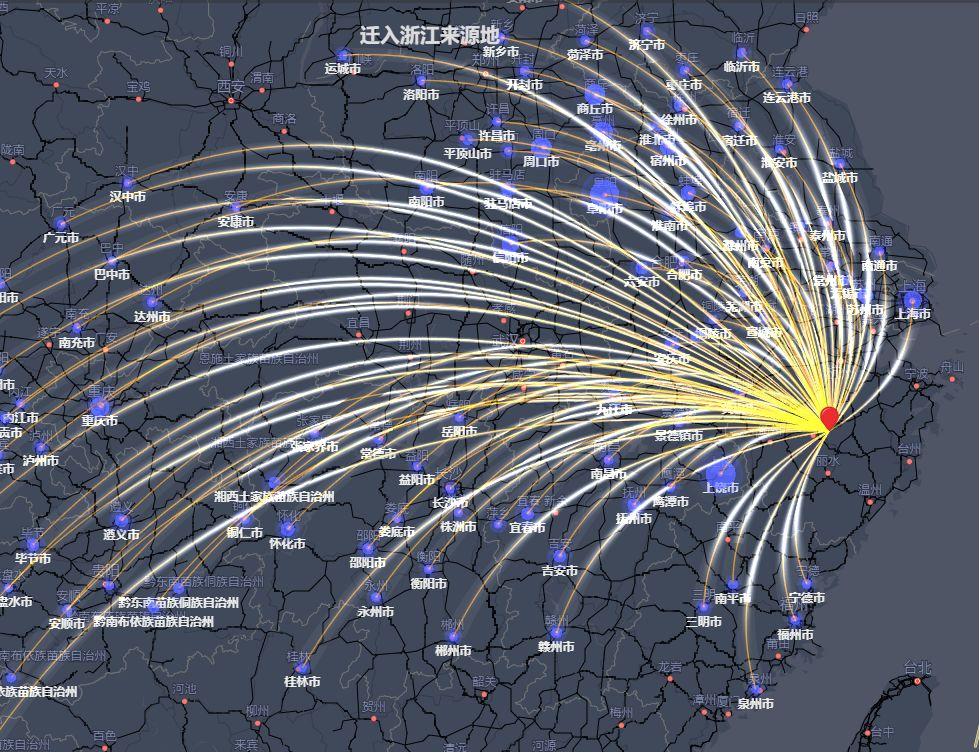 (图片说明:春节后迁入浙江的来源地,图片来源:百度迁徙)