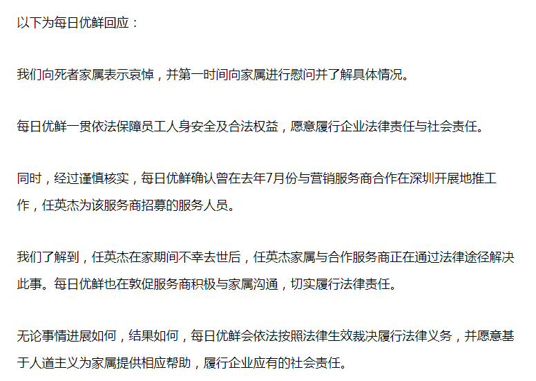 19.每日优鲜回应员工死亡:为服务商人员 愿提供相应帮助