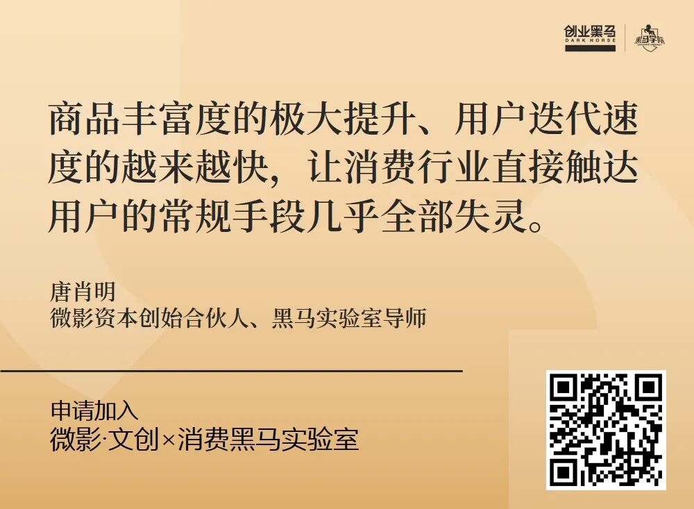 4月23-24日,微影·文创×消费产业黑马实验室首期开营。作为该实验室导师,微影资本创始合伙人唐肖明认为,虽然时代日新月异,但消费行业追求美、效率和性价比的本质未变。消费企业要在抓住行业本质的前提下,通过好的文化内容区分出自己的精准受众,并进行精耕细作式的运营。 消费行业面临什么新的挑战? 消费企业如何找到自己的精准用户? 文化+消费如何更好地帮助企业变现? 以下文章主要回答上述问题,内容为唐肖明导师在黑马实验室的讲课节选,经编辑整理。