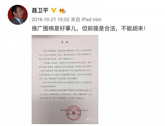 以2016年闹的最沸沸扬扬的“聂卫平围棋教室”为例,不少培训机构假借“聂卫平”之名宣传。2016年10月聂卫平本人亲自出面,发布声明称,“聂卫平围棋教室”商标已不再使用,与“聂卫平围棋道场”无关联。随后相关机构宣布更名,但有不少家长发现,其宣传招生时依旧打着“聂卫平”的旗号,并且截至目前,部分机构依旧沿用“聂卫平围棋教师”,并无改正。