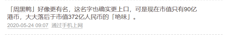 5月25日,周黑鸭盘中最低价仅为3.59港元/股,6月18日收盘价已达6.4港元/股,短短19个交易日内,其股价上涨了78%,市值也突破了150亿港元。