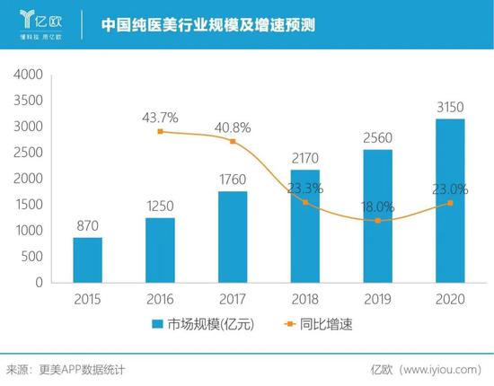 “尽管如此,医美市场也一直是众人追捧的香饽饽。”正如许美邦所说,数据显示,2019年中国纯医美市场规模高达2560亿元,近五年的平均增速为30%左右,预计2025年中国医美市场规模突破万亿元。
