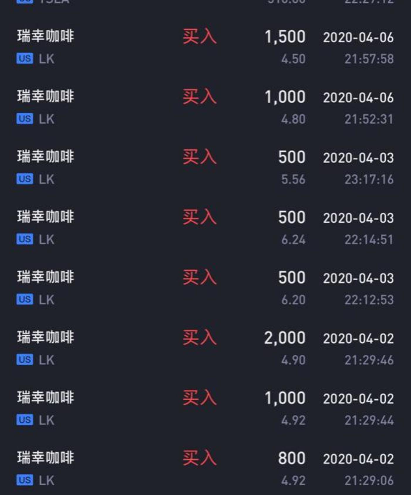阿行自己其实算是个胜利者,因为他靠着4月2日晚上抄底瑞幸狠狠地赚了一大笔钱。