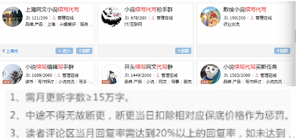 显然,网文小说代写服务之所以目前迅速发展、壮大,也正因为行业存在大量相关的需求,平台、读者、作者三方合力下,自然会有生意产生。