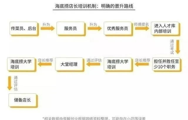 其次,海底捞曾经引以为豪的晋升机制,也要求海底捞扩张。张勇在解释员工的高留存率时说:“我们的员工工资在餐饮行业里是比较高的。然而,我们完善的晋升机制才是吸引员工的地方。我们所有的店长,经理都是从基层员工选拔上来的。我们会告诉每一个员工,只要你好好干,我们就一定会提拔你,这是我们的诺言。”