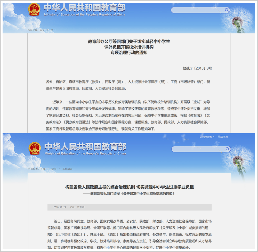 仅2017年以来,国务院、教育部就累计下发针对校外培训乱象的治理通知/意见/指示至少23次,两会上提出的关于减轻中小学生课外负担的意见更是多达40次以上。但三令五申的背后,以主要学科成绩提升为目标的K12教育补习班并没减速,而是加速向全国蔓延。