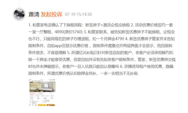 尤其是今年6月,也就是在推出亿元补贴前的一个月,自如很多的业主被要求降低房租,或者解约。