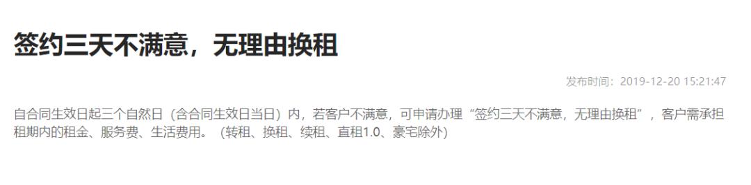 第一,自如在2019年的时候还在推行三天无理由退租。这也是小张很放心自如的原因。但是在2019年底的时候,自如悄悄地改成了三天无理由换租,并且管家没有当场进行告知。