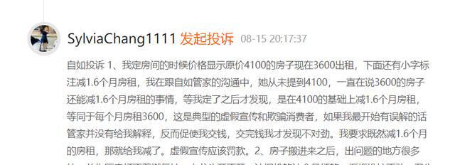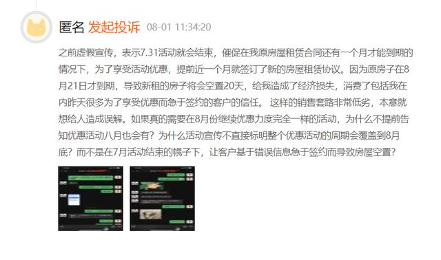 这种宣传方式,给租客带来了误导,有租客在黑猫投诉上反应,以为是优惠价格再加两个月的免租。