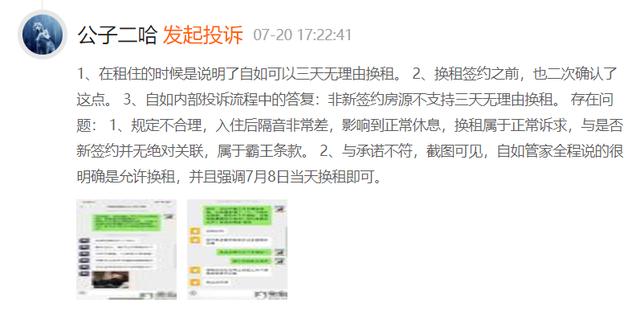 甚至是有租客反映,管家当时(今年7月)承诺的依然是三天无理由退租,但后续否认。