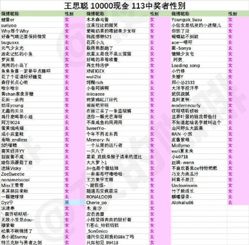 获奖名单中,有112名女性获奖者和1名男性获奖者,女性获奖者比率是男性的112倍。网友吐槽,“男人与狗,不得抽奖。”