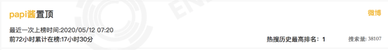 断更期间,papi酱的微博账号阅读量锐减,转发的一条任务微博下,热评委婉地催更道:“奶奶,你关注的博主更新了”。但是当papi酱带着作品回归,立刻冲上微博热搜榜首,视频播放量超过4000万。
