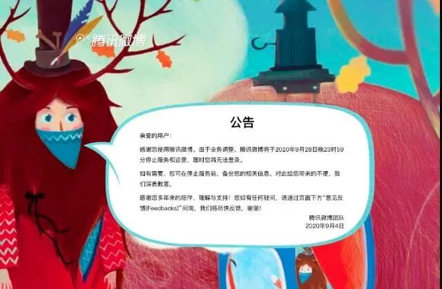 此前,腾讯微博官网宣布将于 2020 年 9 月 28 日晚 23 时 59 分停止服务和运营,届时你将无法登录。并且公告称,用户可进行个人微博内容备份申请。申请提交成功后,腾讯会在 14 个工作日内将相关备份内容发送至你用于登录腾讯微博的 QQ 号所对应的 QQ 邮箱。