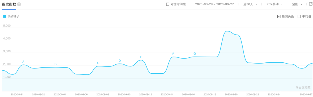 虽惹争议,却也是有效果的。#沉默的真相 广告植入#的话题从9月21日开始在微博热搜榜引爆,良品铺子的百度指数也在当天达到近一个月来的最高峰值。