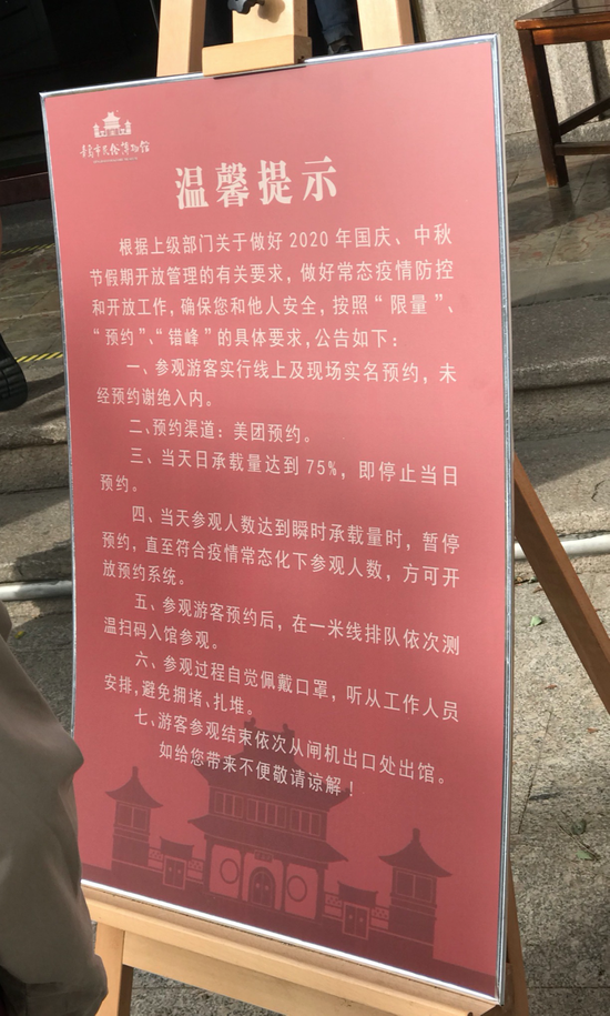 值得注意的是,每个景区入口处张贴的“温馨提示”,预约渠道只有美团,没有显示其他平台。