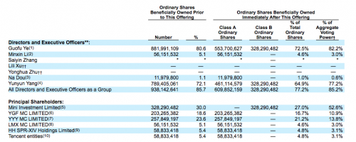 根据招股书,IPO前,叶国富持有公司超80%的股份,高瓴资本和腾讯则分别持股5.4%。