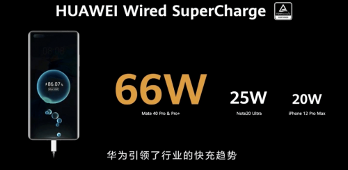 华为这次66W有线+50W无线的快充组合算不上最快,但也跟上了行业主流。相比之下,iPhone 12系列均支持Magsafe磁吸无线充电功能和20W快充就逊色很多了。
