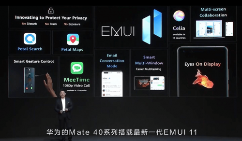 在鸿蒙成熟前,华为Mate40系列搭载了EMUI11系统,没有太大变化,延续EMUI的一贯风格。这里重点提一些小功能:在检测到用户注视的时候,还有手势操作,做了一点完善,比如注视的时候才有的息屏显示,手势增加了按压、左右滑动等功能。