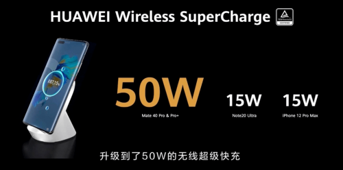 在“快”充方面,Mate40 Pro&Pro+相比上一代Mate30 Pro,有线充电从40W提升到66W,无线充电从27W提升到50W。66W相当于半小时充满手机。另外这次的快充方案,是配合着所有的快充配件一起升级的,包括有线充电线、无线充板、车载充、车载无线充、移动电源,还有GaN多口充电器。