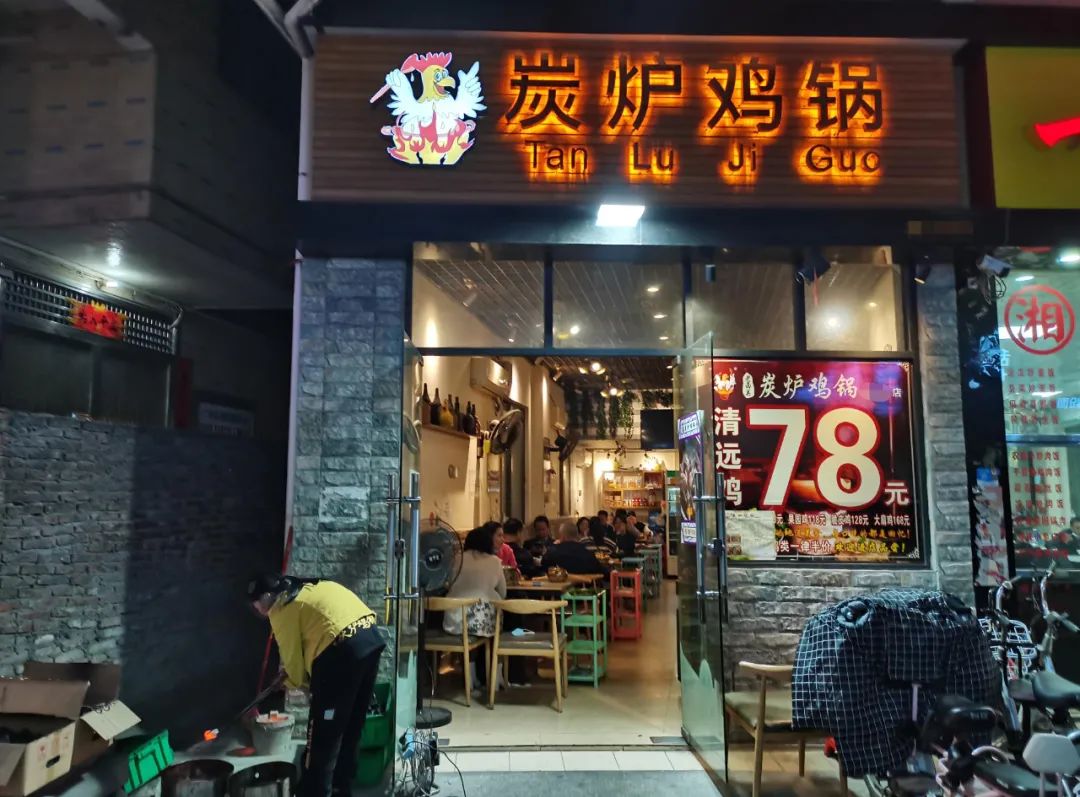 比如鸡煲店,这种一般得吃1个小时,位于中间位置的炭炉鸡煲标价78元,是整条巷子的冠军,拿下56个顾客