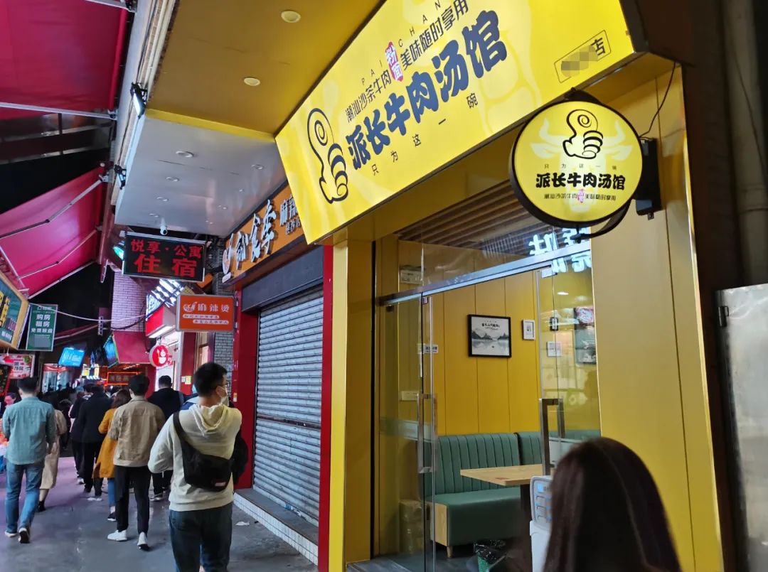 比如派长牛肉汤馆,店的位置最靠近入口占尽优势,但食物品类少只有牛肉汤粉和牛肉盖饭2种,定价是大的25,小的18,这个价格在城中村一点优势都没有。