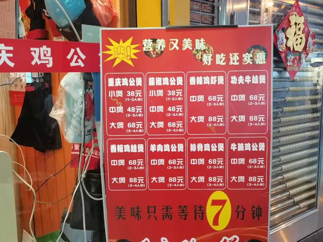 而位于巷子最前面的重庆鸡公煲小煲只要38元,却仅有11个顾客