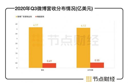 微博的主要收入来自广告营销和增值服务两块业务,2020年第三季度,微博广告营销业务营收为4.17亿美元,上年同期为4.12亿美元,增值服务的营收为4907万美元,较上年同期的5530万美元下降11%,,这主要由于直播业务的营收下降。
