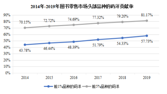 一家市场占有率TOP前5的出版商告诉「电商在线」,2020年他们开设了上百场直播,从数据上来看,带货销量在3000-4000册,有时也能破万。但是,对于出版商来说,这更多是为了打造爆款的需要。一个爆款书就足以拉动销量,2014年至2019年,最畅销的1%图书品种的码洋贡献率从43.78%逐年增加至57.73%,前5%图书品种的码洋贡献率从70.15%上升至81.17%。