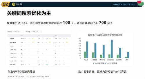 教育类产品Top3、Top10关键词数多数都超过100个,更有甚者达到了近700余个。