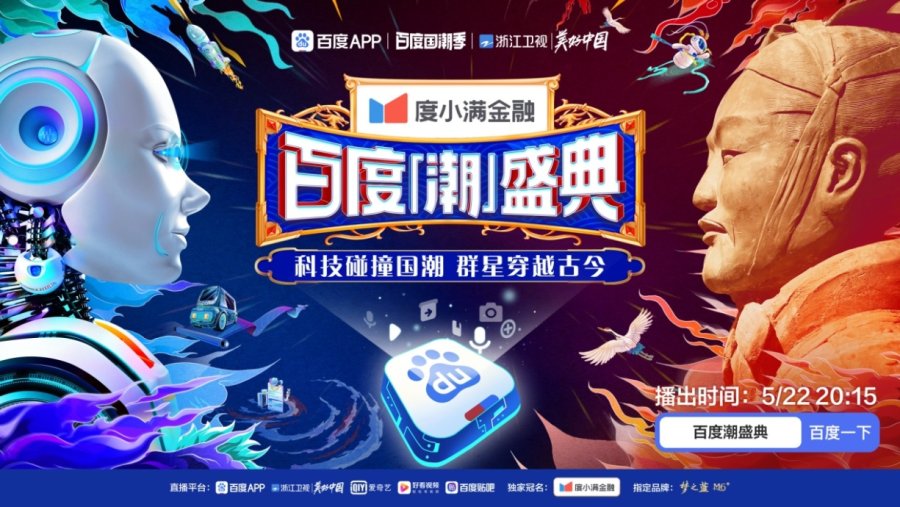 百度潮盛典将于5月22日晚20点15分在浙江卫视准时播出。届时,观众可通过百度APP、浙江卫视、爱奇艺、好看视频、百度贴吧等各大媒体平台观看联合直播。