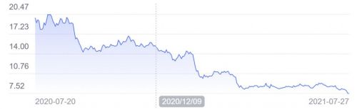 在这份不错的成绩单下,立讯精密自 1 月中旬以来股价不断下跌,市值从最高的 4000 多亿元下跌到目前不到 2737 亿元。歌尔股份也同样出现了股价跳水,从 2020 年的最高市值 1630 亿元,跌至目前的 1335 亿元。