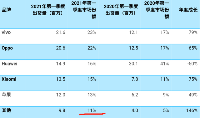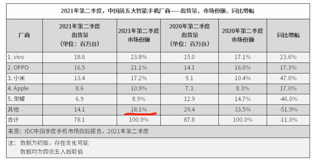可以清晰看出,当下对于魅族此类被统计为“其他”的厂商而言,窗口正在打开。