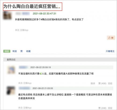 当然,被提及最多的还是陶白白 " 蹭热度 "" 营销咖 "。