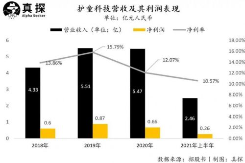整体营收方面,招股书显示,护童科技 2018 年至 2020 年,以及 2021 年上半年的营业收入分别为 4.33 亿元、5.51 亿元、5.47 亿元、2.46 亿元,净利润为 0.6 亿元、0.87 亿元、0.66 亿元、0.26 亿元。
