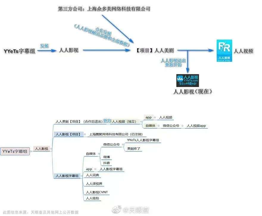 在梳理事件始末之前,首先得先了解一点:人人影视和人人视频不是一家,而与人人影视相关的YYets字幕组还活着。
