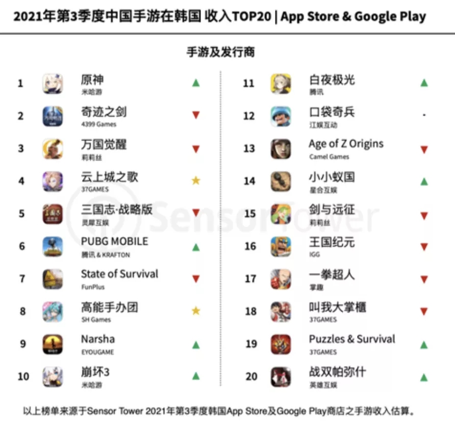 在今年三季度中国手游在韩国收入排行中,《高能手办团》位列第8位,超过了米哈游的老牌二次元游戏《崩坏3》,可以说是非常亮眼的成绩。在一系列通稿以及投资中,我们也可以看到B站对游戏这一重要商业化渠道的看法转变。