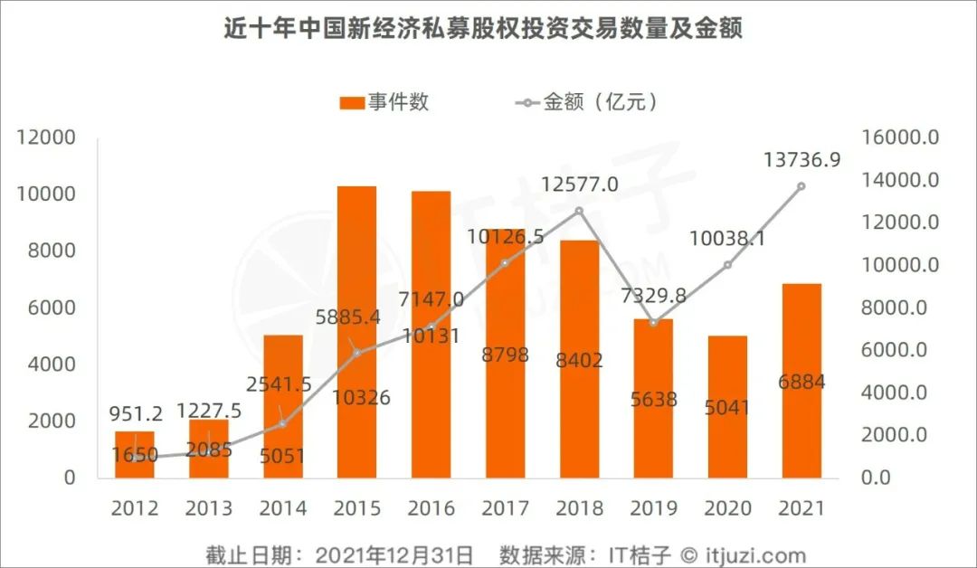 从 2012 年至 2021 年,这十年间中国新经济股权投资领域总计发生了 6 万多起投融资事件,流动着 7 万亿元的资金。