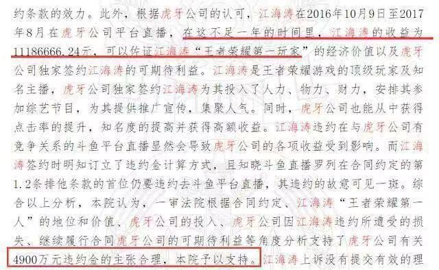 参考资料:《人设崩塌违约跳槽后 王者主播嗨氏被判赔4900万》