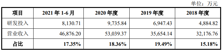 在研发投入上,极飞科技在2018年、2019年、2020年、2021年上半年研发投入金额分别为 4884.82万元、6947.43万元、9735.84万元、8130.71万元,占营业收入比例分别为15.18%、19.49%、18.36%、17.35%,截至2021年6月30日,极飞科技研发人员共计527人,占公司员工总人数比例为38.47%。