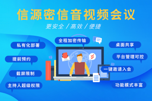市面上大部分的即时通讯软件没有直接配备会议功能,用户需要来回切换不同软件以实现不同的办公需求,增加用户使用成本。信源密信在研发时就设置了具备安全保密性能的音视频会议功能,该功能可一键发起音视频通话、面对面视频会议,方便快捷;支持一键邀请入会;支持预约会议,提前预约,即时提醒,高效协同;支持多种会议模式及完善的主持人权限控制;支持通过桌面共享、文档上传等同步工作汇报、工作安排;支持远程协助,指导解决紧急问题,让企业工作更高效便捷。