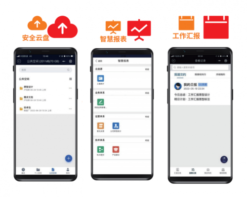 信源密信拥有丰富的协同办公功能,包含安全云盘、智慧报表、知识库、工作任务、工作汇报、考勤打卡、工作审批、会务管理等。比如安全云盘可为用户提供私有的文件存储空间,让数据更安全。用户内部文件方便归档、传输管理、分级使用不易外泄,文件可见范围受控管理。智慧报表满足用户收集各种上报信息,通过配置自定义表单内容,完成需要的上报信息表单设计,可按照角色、部门领导、特定人员等方式配置接收人。工作汇报满足用户简单方便的记录工作情况,优化工作内容,提高工作方式。领导能更好的了解企业各环节的进展情况,从而更好更快捷的调整部署工作方向。汇报类型分为日报、周报、月报。汇报对象分为单人、多人、组织架构、 群,可定期向已设置好的接收人发送汇报。