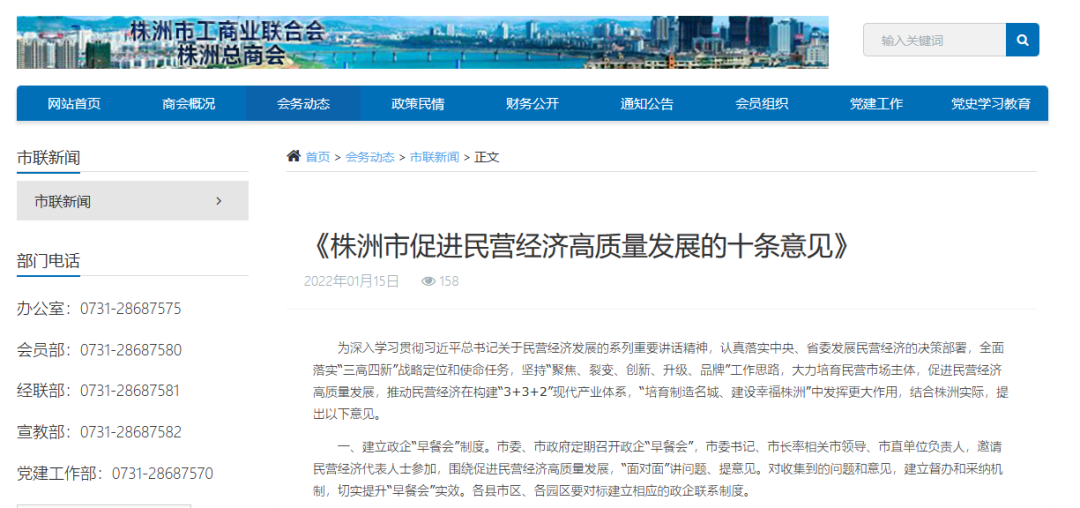 对于民营经济,株洲出台“民营十条”护航民营经济发展——《株洲市促进民营经济高质量发展的十条意见》,从畅通政企沟通、优化营商环境、强化人才支撑、助力开拓市场、强化要素保障等方面推出一系列具体措施。