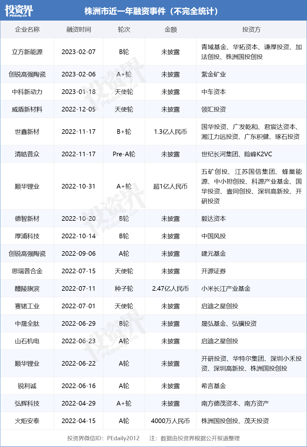 株州市股权投资活跃排行前5名行业