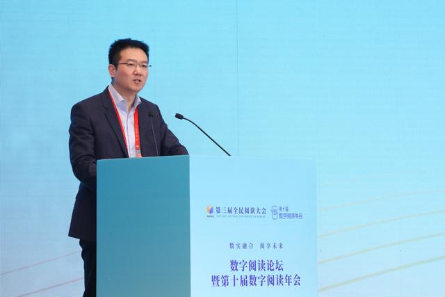 在主题发言环节,中国移动咪咕数媒党委书记、董事长、总经理于航作为数字阅读企业代表分享了对数字阅读的实践与思考。围绕“打造全民阅读新生态 共筑产业发展新空间”主题,于航表示中国数字阅读行业在以5G、人工智能、大数据、区块链等为代表的信息技术的加持下,已呈现出“多元阅读形态共生发展”的新局面。基于此,于航提到中国移动咪咕数媒公司紧紧把握“内容+科技+融合创新”的核心路径,汇聚18万名注册作者、超60万本数字图书、超100万册纸质图书,服务月活用户超1亿户,持续提供多样、便捷的阅读选择。除此之外,中国移动咪咕公司也在不断的探索元宇宙技术、数实融合沉浸技术、数智互动技术的全场景应用,创新推出“元宇宙书房”、沉浸式虚实互动剧本玩法等数实融合产品。